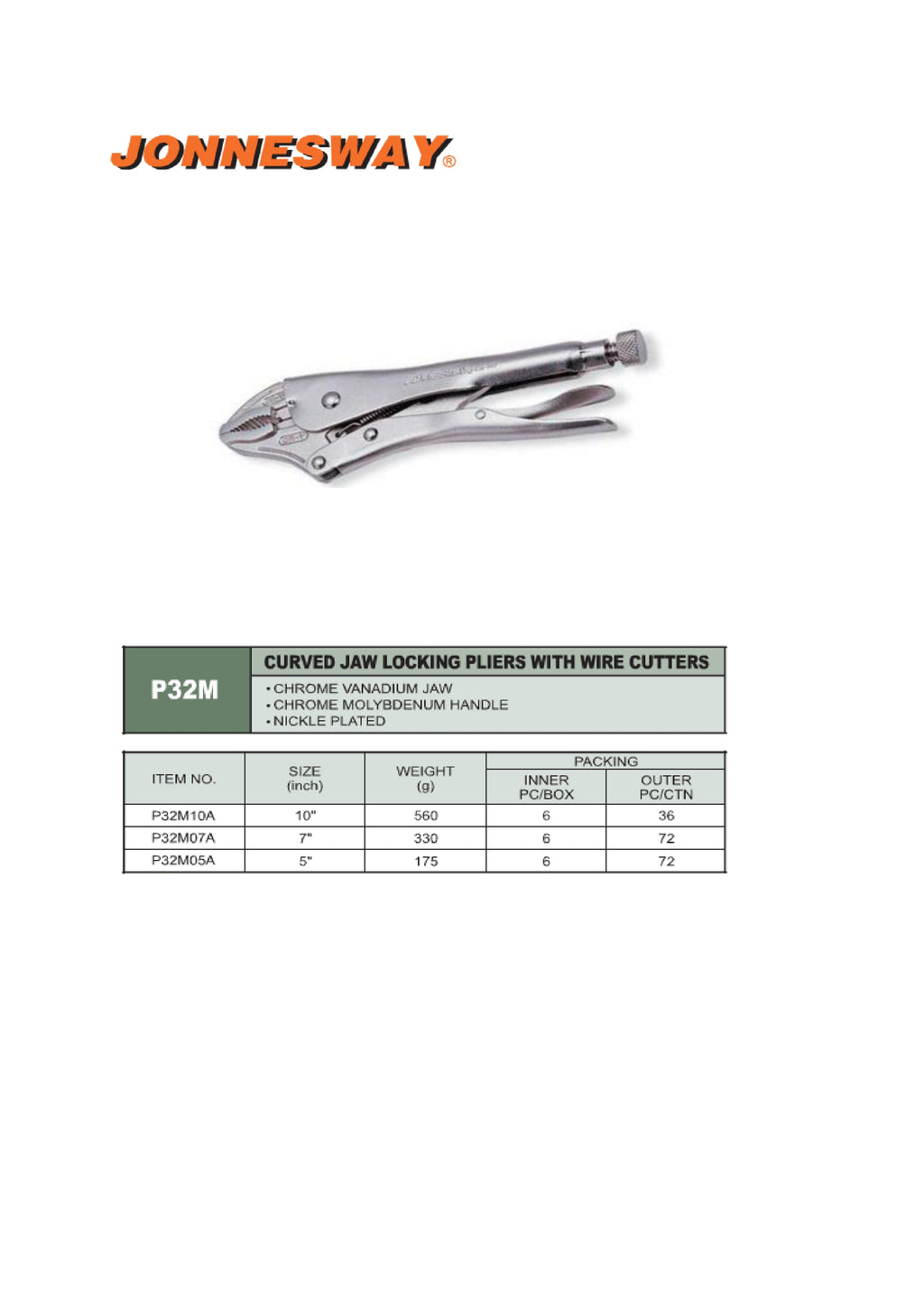 El JONNESWAY® alicate de presión-bloqueo 7" con mordaza curvada y cortalambre es una herramienta profesional ideal para sujetar piezas de forma segura y realizar cortes precisos de alambre. Su sistema de bloqueo ajustable garantiza un agarre firme y estable, perfecto para trabajos mecánicos, eléctricos y de mantenimiento.
